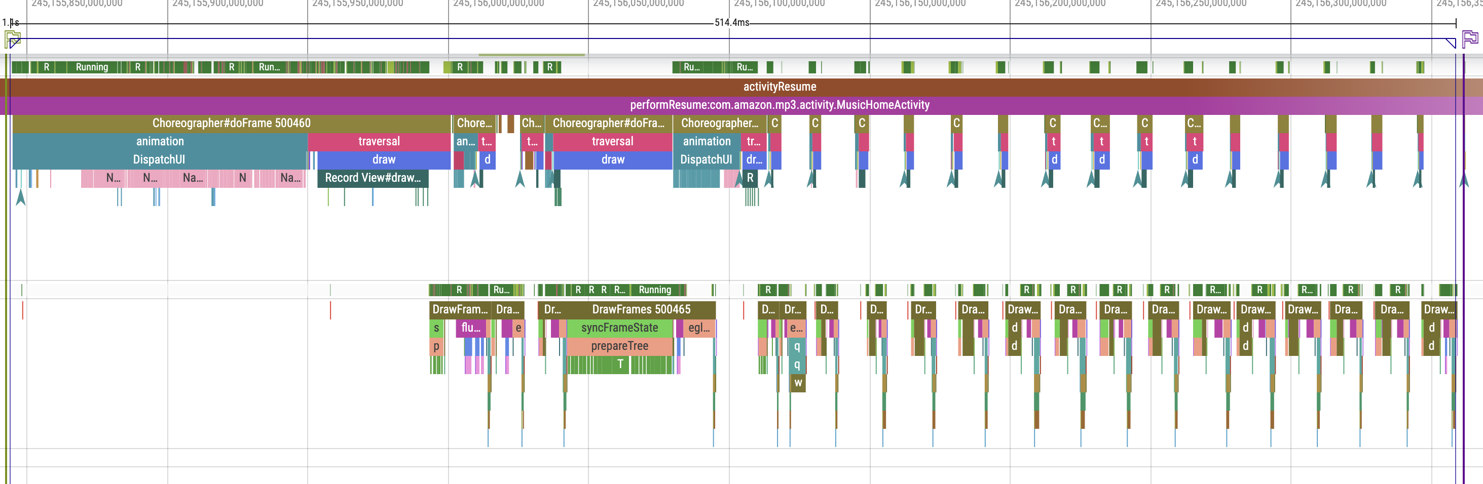 UI Thread. This is where standard android measure/layout/draw happens. The thread name on the right will be your package name (in our case amazon.mp3) or UI Thread. The events that you see on this thread should look something like this and have to do with